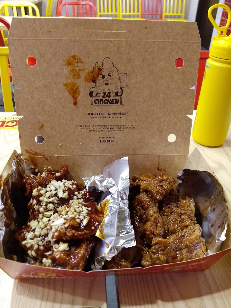 24 Chicken also offers a variety of delicious alternatives, such as the Half or Whole Boneless Chicken, which you can customize with flavors like Garlic, Spicy BBQ, and even Jack Daniels. The Half & Half Chicken option allows you to choose any two flavors, making it perfect for those who want to indulge in more than one taste sensation at a time. As one satisfied customer shared, the combo of Snow Cheese and Yangnyeom was both "delicious and tasty!"